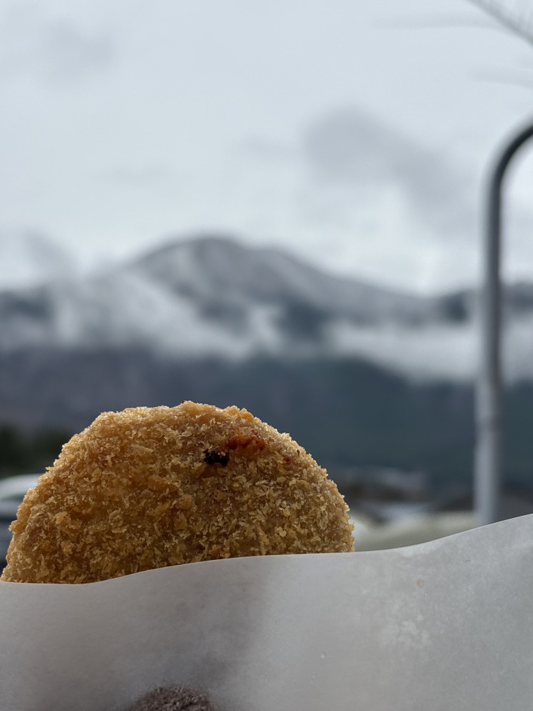 유후인의 대표 먹거리인 금상고로케 먹어주었습니다. 금상고로케는 줄이 긴 편이기 때문에 식사 시간을 피해서 방문해 주시면 웨이팅이 적을 확률이 큽니다. 그리고 현금만 받기 때문에 금상고로케 드실 분들은 반드시 현금을 준비해 주세요. 저는 혼자 여행을 했기 때문에 이것저것 다양하게 시키지 못하고 유명한 금상고로케만 맛보았는데, 바삭하고 따듯하고 맛있게 먹었습니다.